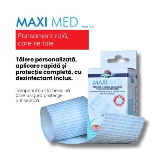 Tampon central din material netesut de grad medical, care conține antiseptic, clorhexidină digluconat 0.5%