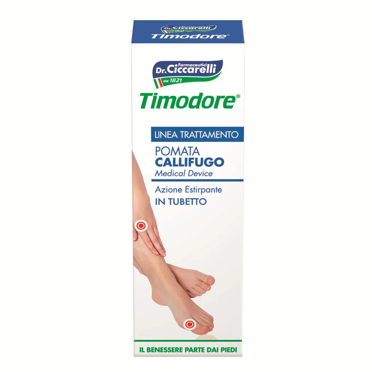 4. Protejați zona tratată cu un plasture Timodore Corn Pad pentru a preveni frecarea cu încălțămintea.